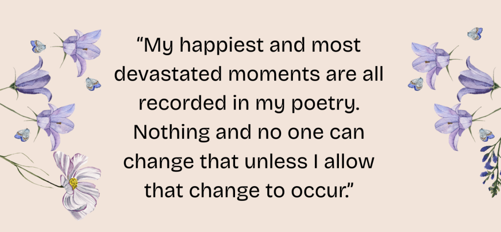 Let me be clear: I will always be a writer, even if I’m my only audience. I told stories before I learned to write, emulating my favourite storybooks. It’s who I am. While talking to our mentor and leader Ann Y.K. Choi about rejection, she told me that we as writers will continue writing because we have no other choice but to write, and that has always been my truth. My happiest and most devastated moments are all recorded in my poetry. Nothing and no one can change that unless I allow that change to occur.