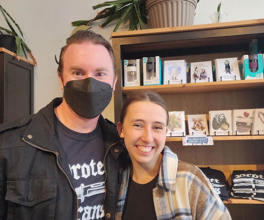 Vanessa with authors Blair Hurley, Jamie Chai Yun Liew, and Emily Urquhart, gritLIT Apr 2023 Ann, Rahma, and Emma with authors Paul Vermeersch and Stuart Ross, Word On the Street Toronto, May 2023Lauren with author Adam Pottle, Little Ghosts Book Store, Toronto, Oct 2023